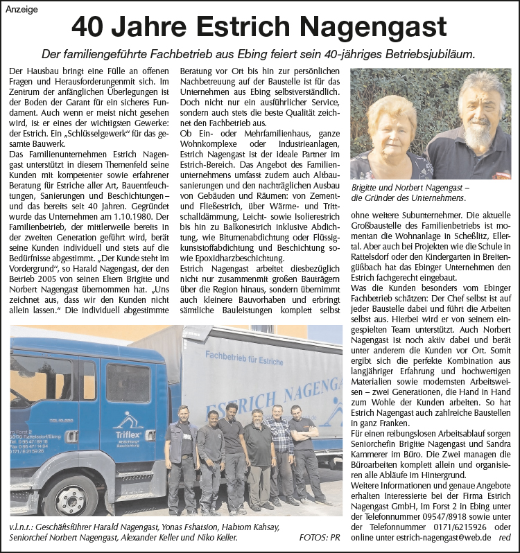 Pressebericht zum 40-jährigen Betriebsjubiläum